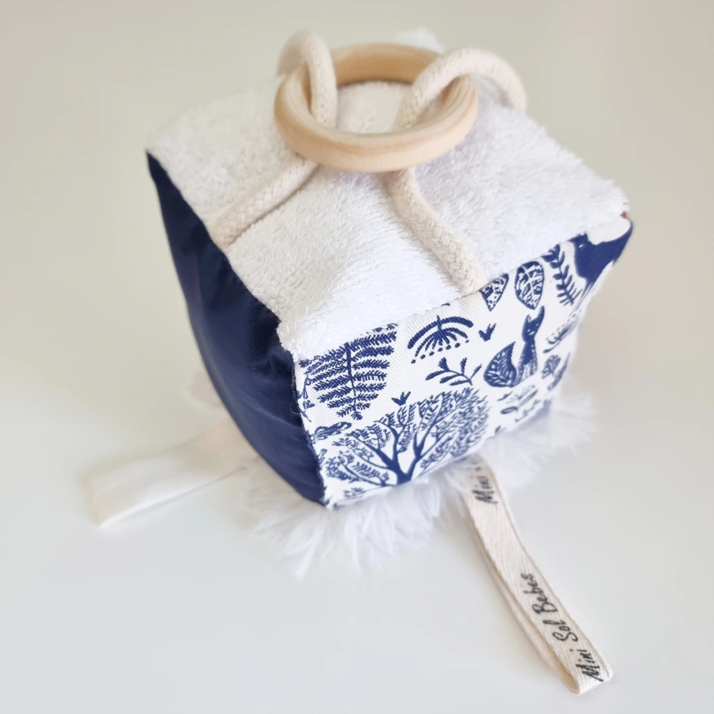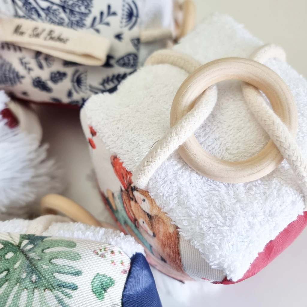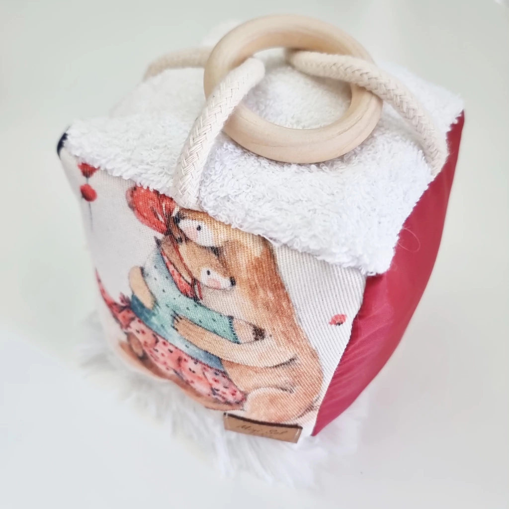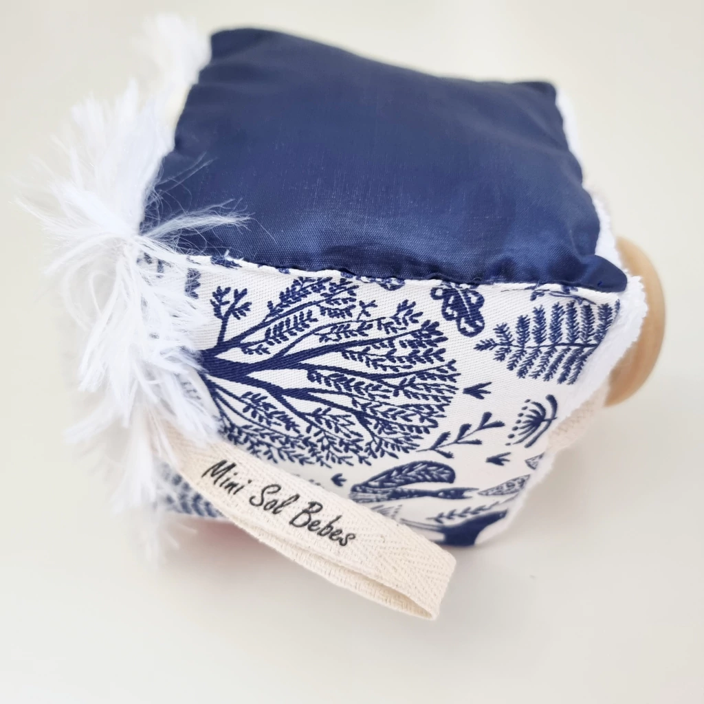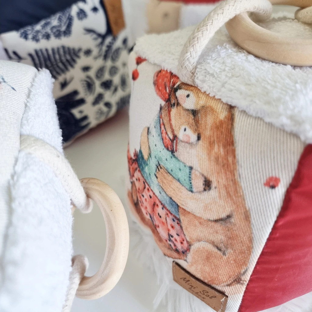 Divertido cubo didáctico sensorial de 6 caras. Ideal para jugar y explorar, desarrollando los sentidos. Tan suave y mullidito que dan ganas de abrazarlo todo el día.